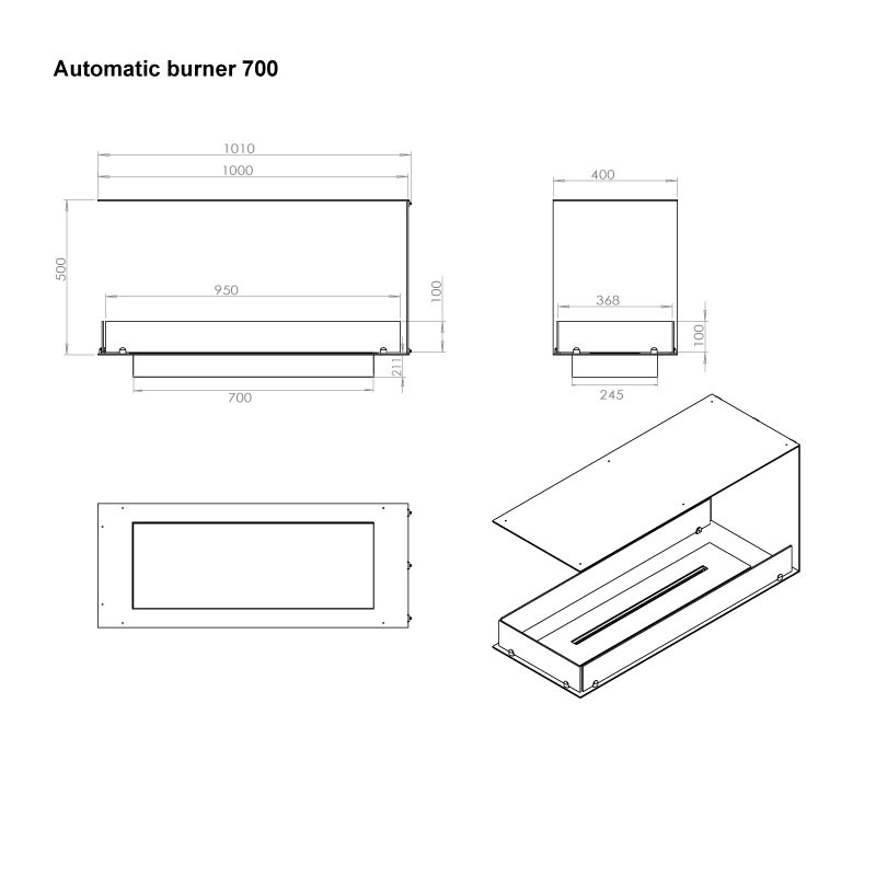 O Foco Room Divider 1000 é uma elegante lareira de bioetanol embutida, projetada para paredes divisórias, permitindo uma vista das chamas de três lados. Com uma largura de 100 cm, esta lareira cria um efeito visual impressionante e uma atmosfera acolhedora no ambiente. Escolha entre um queimador de bioetanol manual ou automático, para conforto ideal e operação fácil. Fabricada em aço inoxidável revestido a pó de 4 mm e equipada com vidro temperado, o Foco Room Divider garante uma experiência de chama estável e um design atemporal.