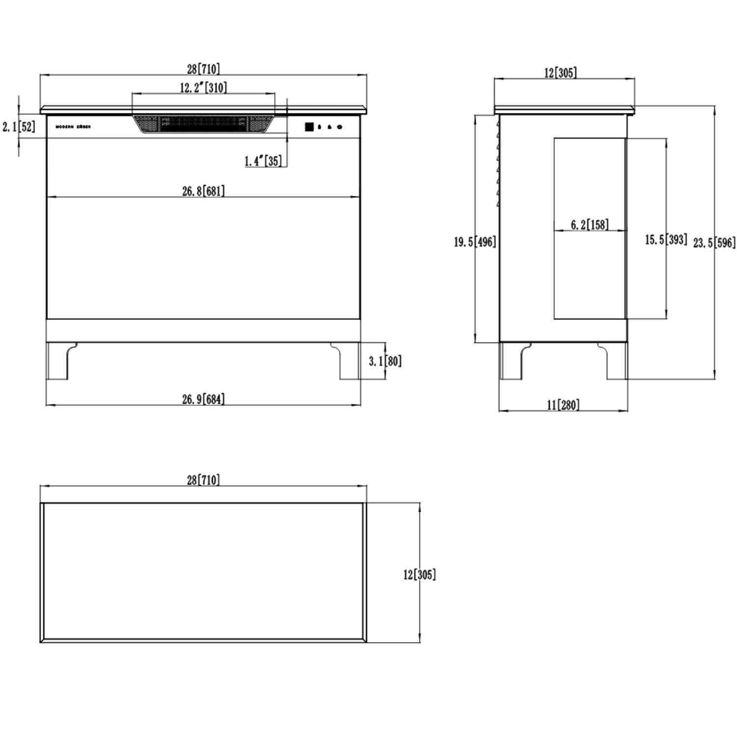 - Dimensões: 71 × 59,6 × 30,5 cm (28\" × 23,5\" × 12\")
