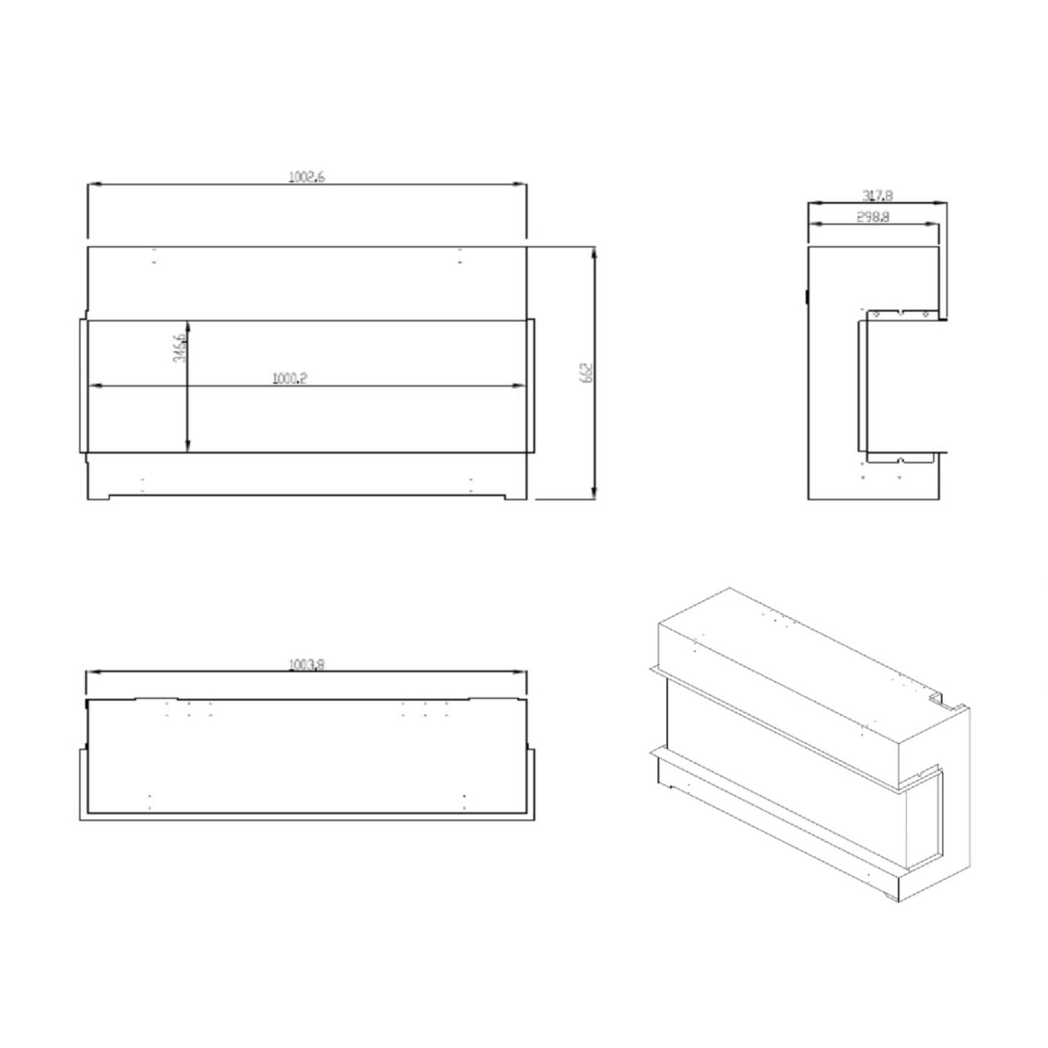 Lareira elétrica embutida de 1 lado